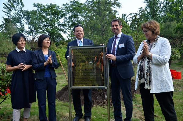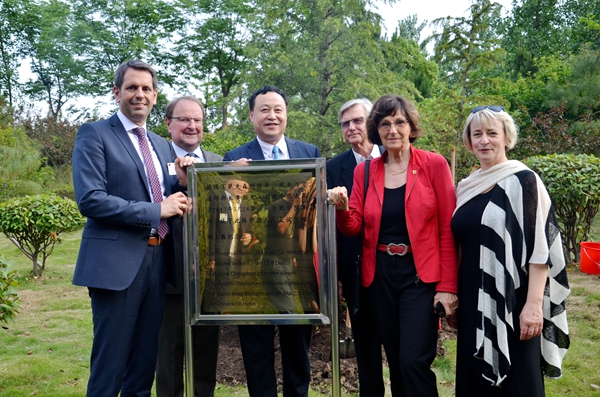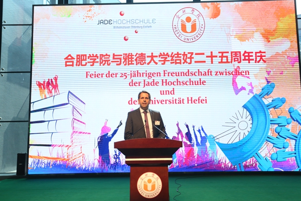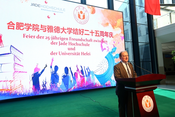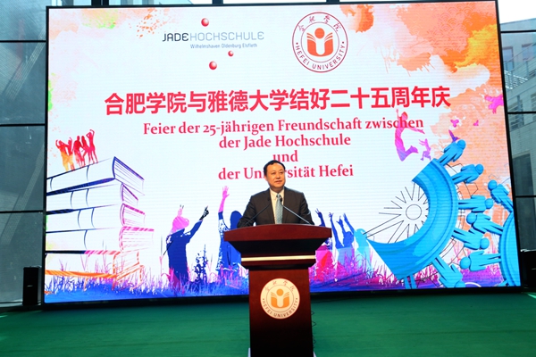 合肥學院與雅德大學結好二十五周年慶典活動在我校圖書館大廳舉行。在觀看了視頻紀念短片后,蔡敬民與德國雅德大學代表科斯特教授分別致辭。雙方回顧了兩校合作歷程后均表示將繼續在現有合作基礎上進一步深化友誼。賴斯部長發表講話,他提到,合肥學院與雅德大學合作基礎雄厚、交往密切,也推動了中德年輕人的交往互動,對雙方來說都是一種智慧投資。慶典活動中,兩校合作培養的338名學生中有部分代表也來到了現場發表感言,并向兩所母校分別贈送了紀念品。合肥學院學生合唱團為到場嘉賓進行了表演,現場氣氛和諧活潑。慶典結束后,賴斯部長及代表團一行在校園里共同種植下象征中德友誼的常青樹。
