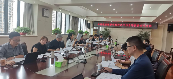 儲忠匯報了學校自評報告的整體撰寫情況。與會人員在前期審閱自評報告討論稿的基礎上,針對報告章節內容進行深入交流,并提出了修改意見和建議。