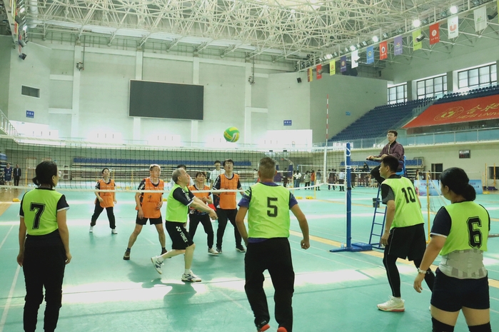 11月15日中午,合肥大學教職工第六屆氣排球比賽閉幕式于二期體育館舉行。18支參賽隊伍來自全校20個分工會,共有180余人參賽。