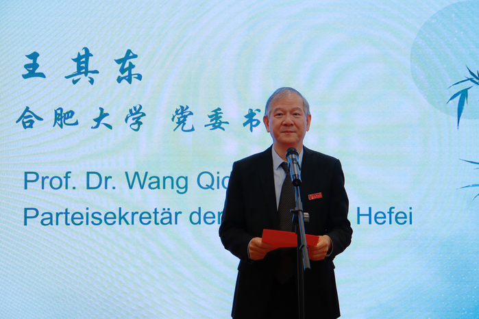 Im Namen der Universit?t hie? Wang Qidong Bürgermeisterin Katharina P?tter und ihre Delegation herzlich willkommen und gratulierte zum Erfolg des Hui-Kultur-Herbstcamps. Er sagte, dass eine tiefe Freundschaft durch den Austausch von chinesischen und deutschen Studierenden  entstanden sei, die eine solide Grundlage für ein neues Kapitel der Freundschaft zwischen den beiden Universit?ten in der Zukunft bilde und der künftigen Entwicklung beider Seiten in den Bereichen Bildung, Wirtschaft und Kultur neue Impulse gebe. Herr Alexander Schmehmann, Pr?sident der Hochschule Osnabrück, zeigte sich in seiner Rede erfreut über die rasante Entwicklung Chinas und die der Hefei Universit?t und hoffte, dass ein weiterer Austausch in verschiedenen Formen die Freundschaft zwischen den beiden Universit?ten, die Zusammenarbeit und Entwicklung vertiefen werde. Eine studentische Vertreterin der Fachhochschule Osnabrück in Deutschland berichtete von ihren Erfahrungen und Erkenntnissen w?hrend des Austauschs an der Universit?t Hefei und sagte, sie werde die sch?nen Erlebnisse nicht vergessen. Am Ende der Zeremonie überreichten Wang Qidong und Katharina Putt gemeinsam den Studierenden Abschlusszertifikate und Geschenke mit chinesischen Merkmalen.