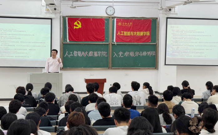 4月17日,黨委副書記、校長任永以《傳承校史精神 勇擔時代使命》為題給人工智能與大數據學院入黨積極分子培訓班學員們上了一堂精彩的黨課。