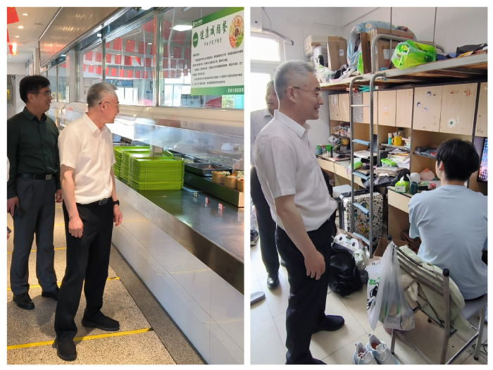 調研中,鄔平川實地走訪了學生宿舍、食堂和活動場所,與學生、學校管理人員和食堂、物業工作人員開展親切交談,深入了解學生社區安全建設、日常管理服務和發展規劃,肯定了各部門在學生宿舍和社區建設的成效,并對下一步工作提出要求。