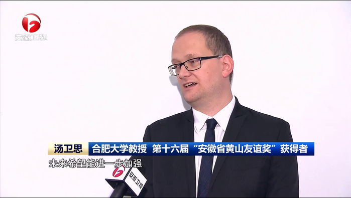 在合肥大學中德合作40周年之際,學校國際化師資隊伍建設再傳喜訊。5月12日,全省科技創新大會表彰了為我省經濟社會發展和促進國際交流合作作出突出貢獻的外國專家,德籍教授湯衛思(Claus Thomas Weise)榮獲第十六屆安徽省“黃山友誼獎”。
