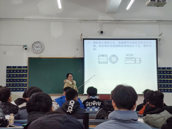 “每天最快樂的事情就是上課。”采訪伊始,劉丹萍老師親切地笑著說道。劉老師所教授的《機械產品表達》課程,旨在培養學生掌握繪制和閱讀工程圖樣的基礎技能,而想要學好其中的難點,繞不開投影法。投影是什么?大到航空航天制造、小到螺母配件生產都與其密切相關。將三維結構展現在二維圖紙上,需要抓住每個視圖中的主要特征并將復雜的線條直觀化,這對空間想象能力要求極高。和大多數工科課程一樣,起初同學們并沒感受到投影法與他們習以為常的思政課有什么關系,甚至還因為內容抽象產生了畏難情緒。