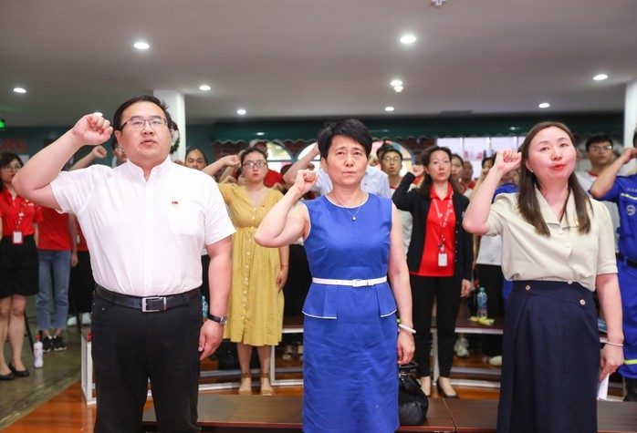 隨后,所有單位共同開展“同上一堂黨課”主題黨日活動(dòng),邀請(qǐng)胡艷萍講授“中國(guó)共產(chǎn)黨百年輝煌報(bào)告”專題黨課。胡艷萍在報(bào)告中回顧了我黨一百年來的風(fēng)雨歷程,從播下革命火種的小小紅船,到領(lǐng)航復(fù)興偉業(yè)的巍巍巨輪,在百年奮斗歷程中,我們黨領(lǐng)導(dǎo)人民取得了舉世矚目的輝煌成就,書寫了波瀾壯闊的歷史畫卷,留下了彌足珍貴的寶貴經(jīng)驗(yàn)和精神財(cái)富。生動(dòng)的報(bào)告深深感染了在場(chǎng)的每一個(gè)人,全體人員始終保持高昂的熱情,專注觀看、認(rèn)真聆聽。