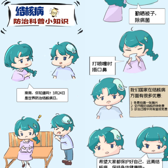 此次大賽中,我校南艷青年新媒體中心制作的圖文類作品《結(jié)核病防治科普小知識漫畫》獲二等獎,該作品將結(jié)核病科普知識制作成漫畫,以圖文解說代替大段文字知識,漫畫采用兩人對話的方式將結(jié)核病的癥狀和防治知識表現(xiàn)出來,受眾更易接收和理解,該作品在校團委qq和官方微信公眾號發(fā)布,瀏覽量達2600多次,點贊數(shù)達300多個。此外,我校圖文類作品《同呼吸共命運,抗結(jié)核齊行動》和海報實物類作品《分秒必爭,終止肺結(jié)核!》獲大賽鼓勵獎。