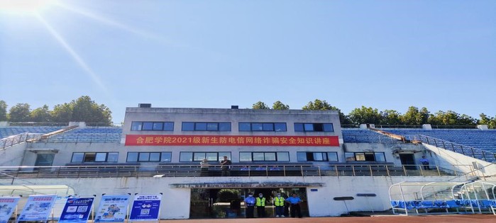 9月22日下午,我校在南艷湖校區(qū)田徑運動場,面向2021級3600多名新生組織開展防電信網(wǎng)絡(luò)詐騙安全知識講座。合肥經(jīng)開區(qū)公安分局費勤勤、戴夢晗兩位警官給全體新生上了“校園安全第一課”,錦繡派出所教導(dǎo)員趙偉,副所長闞衛(wèi)東、劉義春,警長朱紅衛(wèi)應(yīng)邀參加此次講座,講座由校黨委武裝部副部長田野主持。