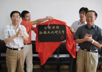 隨后,安徽省地方志辦公室主任朱文根、副院長(zhǎng)陳嘯為合肥學(xué)院江淮文化研究所揭牌。揭牌儀式結(jié)束后,原安徽省社會(huì)科學(xué)院副院長(zhǎng)唐先田發(fā)言。在發(fā)言中他結(jié)合安徽歷史上著名的人物說(shuō)明安徽省有著悠久的文化,在文化研究方面具有優(yōu)勢(shì)。同時(shí),他認(rèn)為文化作為一種精神財(cái)富,需要不斷發(fā)展和傳承。在傳承中創(chuàng)新,不斷創(chuàng)造符合時(shí)代發(fā)展的文化,為建設(shè)文化強(qiáng)省做貢獻(xiàn)。在談到如何將文化研究與安徽省在中部的崛起相聯(lián)系時(shí),他認(rèn)為文化研究必須在繼承優(yōu)秀傳統(tǒng)文化的同時(shí),還需要造就一種新的文化理念,從而促進(jìn)和諧文化、先進(jìn)文化建設(shè),充分發(fā)揮文化在和諧社會(huì)建設(shè)中的作用,為新農(nóng)村建設(shè)和安徽省中部崛起服務(wù)。