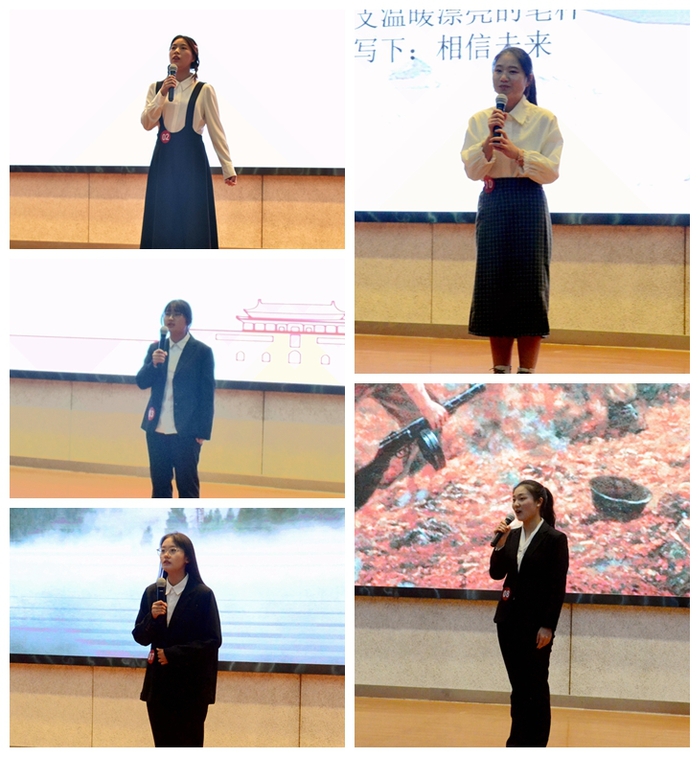 比賽伊始,在個人朗誦環(huán)節(jié)中,各位選手聲情并茂、充滿激情地朗誦經(jīng)典文學(xué)作品。其中,選手們對《誰是我們最可愛的人》《月光下的中國》等選段的精彩演繹,抒發(fā)了強烈的愛國情感。經(jīng)過第一輪的精彩比拼,共有七位選手晉級第二輪——故事人生環(huán)節(jié)。七位選手從“1921年”、“紅軍長征”、“抗美援朝”、“改革開放”、“脫貧攻堅”、“疫情”六個關(guān)鍵詞中隨機抽取,以抽取的關(guān)鍵詞為主題講述故事,選手們緊扣關(guān)鍵詞,引經(jīng)據(jù)典,為觀眾講述了一個個令人難忘的故事,贏得了場下觀眾和評委們的陣陣掌聲。