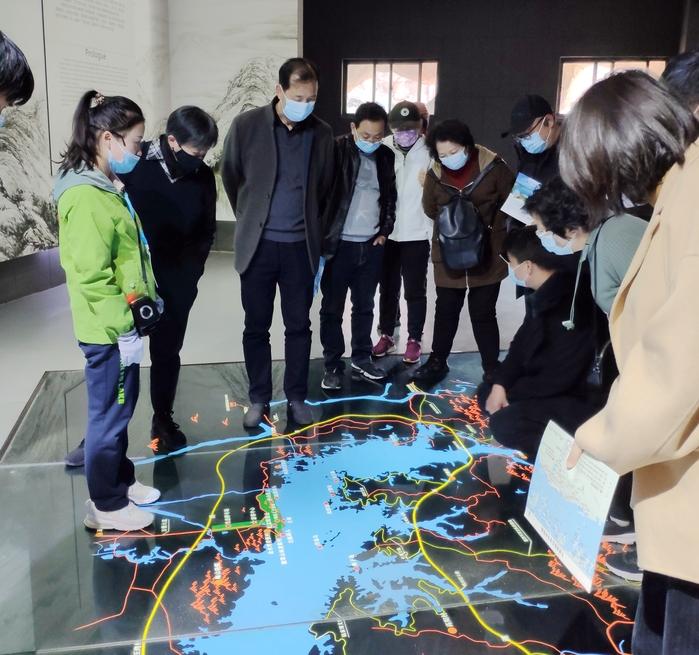 當天下午,考察組一行來到萬佛湖鎮(zhèn)龍河口水庫紀念館,了解水庫建設的意義和作用。龍河口水庫作為淠史杭綜合水利工程主體之一,是以防洪灌溉為主、兼顧發(fā)電航運養(yǎng)魚和旅游等綜合利用的大型水利工程,是淠史杭灌區(qū)重要水源地之一。通過講解員的講解,大家由衷贊嘆當年大壩建設者“自力更生、不怕艱難、改天換地”的革命精神。
