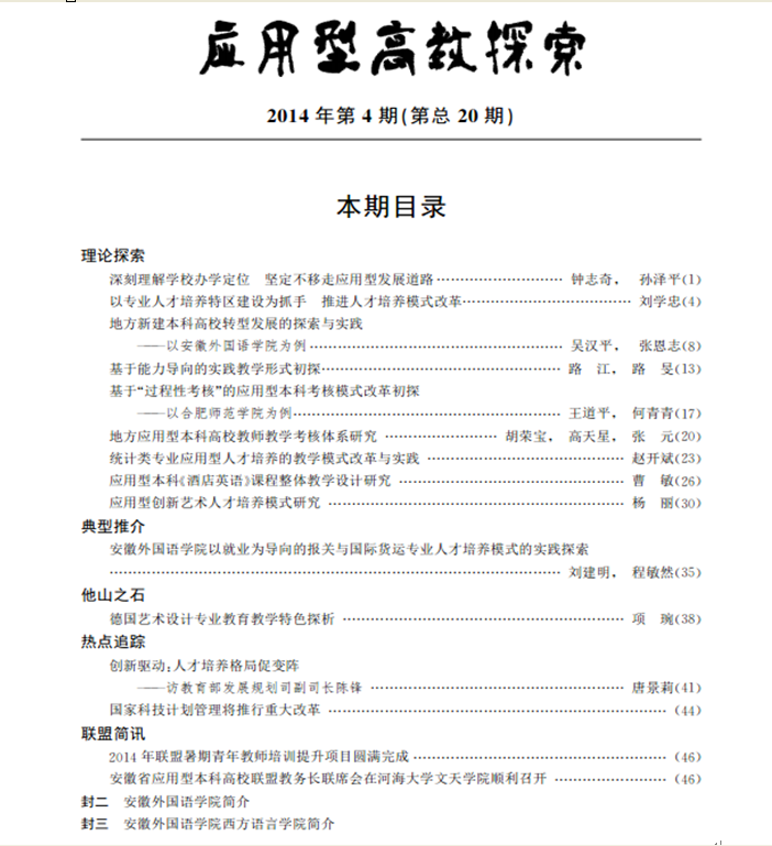 《應用型高教探索》2014年第 4 期(總第20期)已編發,具體內容請查閱發展規劃處網站http://www.evki8c9.xyz/s/85/t/330/p/6/list.htm