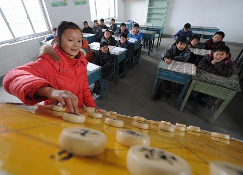 3月5日,合肥學(xué)院大學(xué)生周潔在給孩子們上象棋課。新華社記者 劉軍喜 攝