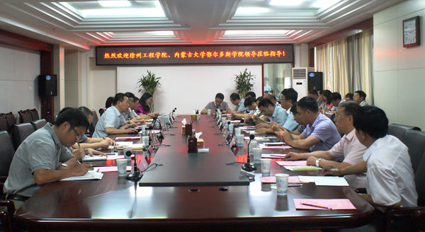 7月8日,徐州工程學院校長張新科、內蒙古大學鄂爾多斯應用技術學院黨委書記秦聞蘋分別率團到我校調研交流。校長張文兵在行政樓九樓東會議室接待了兩所兄弟高校的來賓,黨政辦、宣傳部、外事處、人事處以及相關系負責人參加交流。