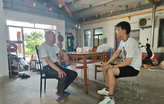 圖為調研人員正在采訪大包干發起人之一嚴金昌老人