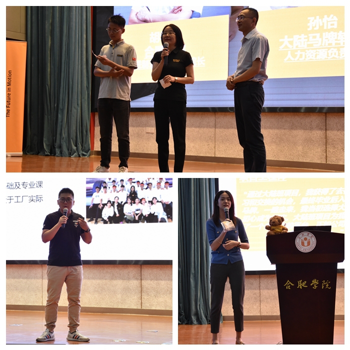 首先,大陸馬牌輪胎(中國(guó))有限公司招聘與雇主品牌經(jīng)理李媛媛介紹了大陸集團(tuán)及大陸馬牌輪胎公司的組織架構(gòu)、前沿技術(shù)、品牌定位,詳細(xì)講述了大陸馬牌輪胎合肥工廠的概況、發(fā)展歷程和市場(chǎng)規(guī)模。大陸班負(fù)責(zé)人張光洲從班級(jí)的基本概況、班級(jí)辦學(xué)特色、大陸班的發(fā)展機(jī)遇與挑戰(zhàn)、課程設(shè)置、學(xué)費(fèi)標(biāo)準(zhǔn)等方面為現(xiàn)場(chǎng)同學(xué)詳細(xì)介紹了項(xiàng)目情況。在答疑互動(dòng)環(huán)節(jié),先進(jìn)制造工程學(xué)院院長(zhǎng)胡學(xué)友、大陸馬牌輪胎(合肥)有限公司人力資源總監(jiān)孫怡講解了大陸班選拔流程,優(yōu)秀畢業(yè)生代表暢談在大陸班的成長(zhǎng)故事,鼓勵(lì)新生積極參與項(xiàng)目報(bào)名。