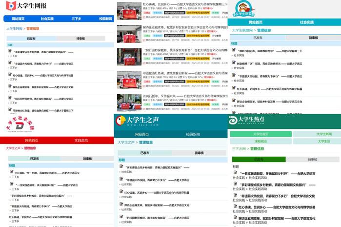 團隊秉持以文化浸潤鄉土,用傳媒連接城鄉的理念,共計發布72篇新聞稿,向包河青年、裕安共青團等17個網站投稿,閱讀量達46795次。制作并發布了3條話題Vlog和《情系裕安八載行:青春賦彩鄉村路》等4條創意視頻,收獲瀏覽量22721次,多維傳播了鄉村振興新成果。