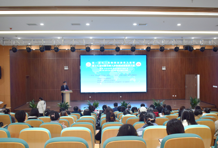 12月5日,第一屆長三角韓國語演講大賽暨第十七屆安徽省“順天鄉杯”韓國語演講大賽決賽在我校55棟學術報告廳舉辦。黨委副書記、校長任永,順天鄉大學副校長金龍夏和省教育廳外事處處長姚德勇出席開幕式,副校長陳秀出席頒獎典禮。