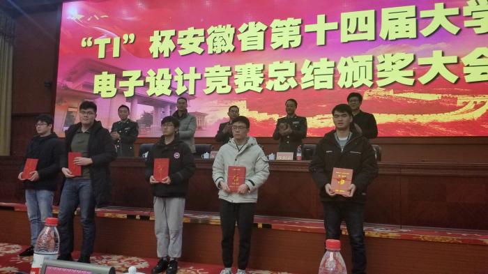 頒獎會1月4日在國防科技大學電子對抗學院舉行,安徽省教育廳高教處副處長朱永國,安徽省電子設計競賽組委會執行主任張建云、組委會委員魯昌華教授等出席。合肥學院教務處副處長儲忠,大學生創新創業教育中心主任劉沛平,先進制造工程學院實驗中心主任高先和,合肥學院電子設計競賽負責人李翠花,指導老師周澤華、李瑤、馮玉武等老師參加了頒獎會。