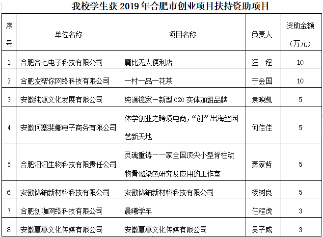 我校大學生創業園多個創業團隊獲2019年合肥市高校畢業生創業項目扶持資助