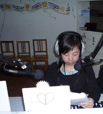 經過合肥學院新聞中心廣播臺一年多的歷練,初上電臺的黃鵬鎮定自若,用那校園里最平靜和熟悉的聲音,通過電波向所有聽眾展示著自己的主播風采。在與兩位電臺主持人的交談中,黃鵬與廣大聽眾共同分享了自己對廣播的熱愛以及自己在生活、工作中的點滴故事。工作的嚴肅認真,生活的感性體貼,充分展示了她自信、堅強、不斷追求完美的形象。節目最后,黃鵬還為聽眾帶來了其在合肥學院廣播臺陽光旋律中精心制作的節目《心聲》。