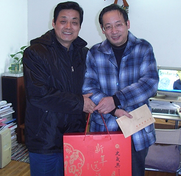 2008年元月22日是今冬以來最寒冷的一天,冰雪未融,春寒料峭.院工會主席鮑安義率院工會干部,踏著冰雪前往省建材局宿舍慰問看望我院中文系退休教授?p上世紀60年代勞模王圣貽老師,帶去了學院黨政領導的關心和問候,送上了新春禮物和省級勞模榮譽證書,并與王圣貽老師促膝談心,黨政領導對勞模的關愛深深感動了這位60年代的勞模,她滿含熱淚地表示要為學院的建設和發展再獻余熱。