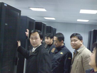 各系部的網(wǎng)管員參觀南區(qū)網(wǎng)絡(luò)中心機(jī)房