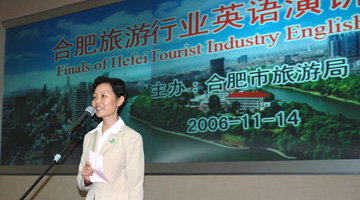 11月14日上午,由合肥市旅游局主辦的合肥旅游行業(yè)英語演講比賽決賽在合肥市政務文化新區(qū)政府會議室舉行。全市共有合肥學院、安徽大學、合肥工業(yè)大學3所高校以及各大星級酒店、旅行社共11個單位參加比賽。
