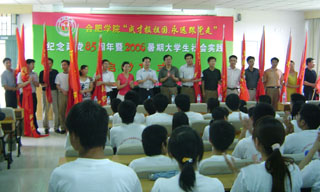 最后,院黨委副書記、院長趙良慶等領導為18支志愿服務團隊授旗,標志合肥學院2006年暑期社會實踐活動全面啟動。(團委)