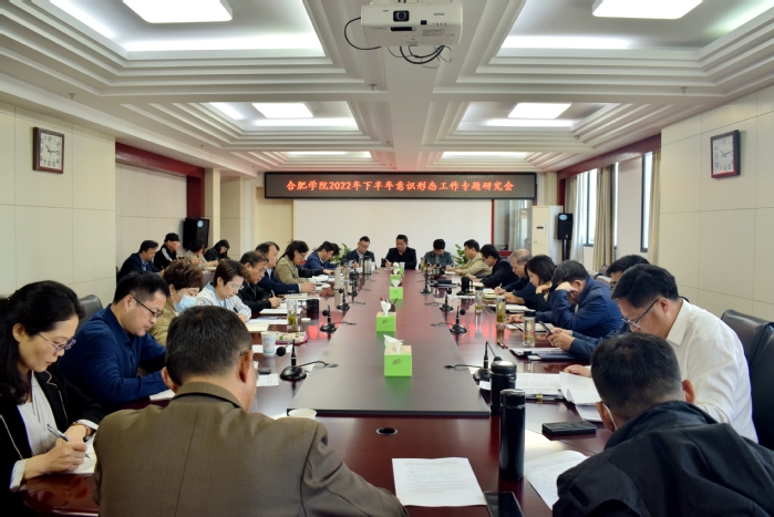 黨委研究生工作部部長葛春梅就研究生意識形態工作作重點分析研判;黨委委員、學工部部長朱濤作《合肥學院2022年春季學期大學生思想動態調研分析報告》;黨委委員、宣傳統戰部部長賈峰傳達上級有關文件精神、通報近期學校意識形態相關工作及下一步工作安排。