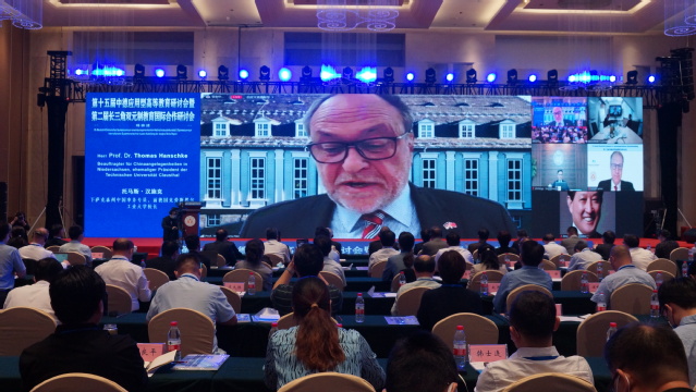Am 28. September wurden das 15. chinesisch-deutsche Symposium über anwendungsorientierte Hochschulbildung und das zweite Symposium über internationale Zusammenarbeit im dualen Bildungssystem im Yangtze-Delta mit dem Thema ?Innovation und hochqualitative Entwicklung“ in Chinas Hefei und in Deutschlands Osnabrück online und offline gemeinsam er?ffnet. Als Teilnehmer hielten Wan Gang, Vizepr?sident der Konsultativkonferenz Chinas und Pr?sident des wissenschaftlich-technologischen Vereins Chinas, Christian Wulff, ehemaliger Bundespr?sident Deutschlands, Wang Qingxian, Ministerpr?sident der Provinz Anhui Chinas und Stephan Weil, Ministerpr?sident vom Bundesland Niedersachsen in Deutschland ihre Reden. Qian Guilun, der Sekret?r für Bildungskomitee der Provinz Anhui, moderierte die Er?ffnungsfeier. Daran beteiligten sich auch der Vizesekret?r und Bürgermeister Luo Yunfeng und stellvertretende Direktoren des Bildungsministeriums von der Provinz Anhui Chu Changlian und Zhang Jiageng.