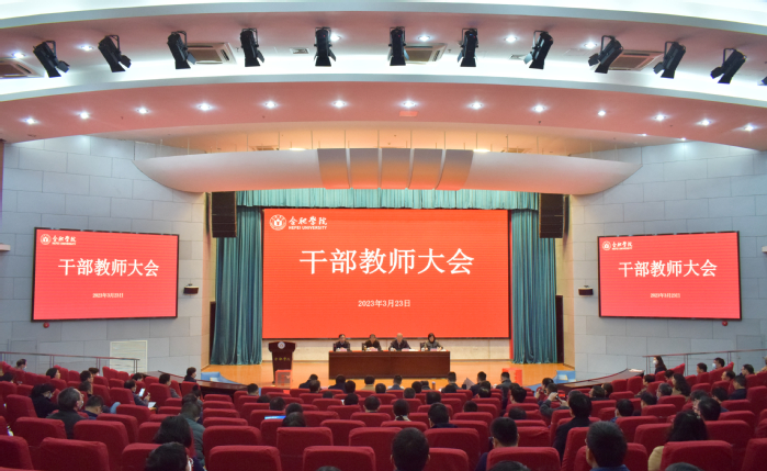 3月23日,我校在圖書館學術報告廳A廳召開2022年度領導班子和領導人員綜合考核大會。省委綜合考核組第十二組組長、省委教育工委委員、省教育廳副廳長儲常連率省委綜合考核組成員出席會議。學校省管領導,機關部門領導成員,院系及二級機構黨政正職(含主持工作的副職),教師代表(省級以上“兩代表一委員”,民主黨派市級以上主委、學校教代會執委、正高以上職稱人員)、學生代表參加會議。大會由黨委書記王其東主持。