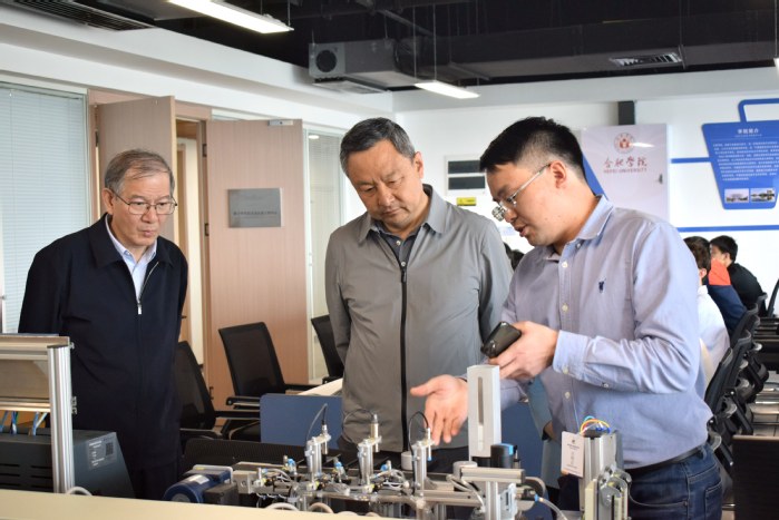 吳俊清一行還來到了中德教育合作示范基地,實地考察了大眾學院,聽取了相關負責人關于大眾學院基本情況、人才培養機制、國際交流合作和產學研合作、建設成效等情況的匯報,參觀了智能制造產教融合實踐中心、數字孿生技術及應用工程中心等實驗室,深入了解學生科研學習及產教融合項目開展情況。吳俊清指出,大眾學院要充分發揮自身優勢,在應用型人才培養方面做出更多的探索,進一步提高應用型人才培養質量。