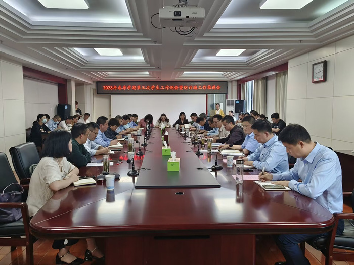 5月25日,2023年春季學期第三次學生工作例會暨防范電信網絡詐騙工作推進會在行政樓九樓東會議室舉行。黨委副書記劉建中出席會議,紀委辦、保衛處、學生處、研究生處負責人,各二級學院黨委書記、副書記、學工辦負責人,部分輔導員參加會議。會議由學生處處長丁增云主持。