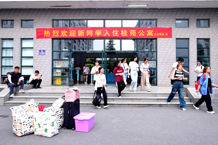 后勤部門堅持以學生為中心的原則,為新生提供一個溫馨、安全、舒適的校園環境。桂苑物業經理表示:“在新生到來之前,我們提前組織將宿舍重新翻修,并在宿舍區新增綠植。此外,在宿舍大廳擺放懸掛防范電信詐騙的立牌和橫幅,幫助新生能夠樹立防詐騙意識。”后勤部門正以飽滿的姿態和熱情的服務,力爭為新生留下“最美合院”印象。