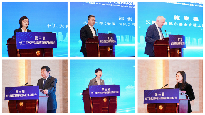 11月24日,由安徽省教育廳、江蘇省教育廳、浙江省教育廳、上海市教育委員會(huì)共同主辦,合肥學(xué)院牽頭承辦的第三屆長(zhǎng)三角雙元制教育國(guó)際合作研討會(huì)在合肥召開(kāi)。會(huì)議旨在貫徹落實(shí)習(xí)近平總書(shū)記關(guān)于加快建設(shè)教育強(qiáng)國(guó)重要指示,加快和擴(kuò)大教育對(duì)外開(kāi)放,推動(dòng)教育國(guó)際合作交流和長(zhǎng)三角教育一體化高質(zhì)量發(fā)展,推進(jìn)教育鏈、人才鏈、產(chǎn)業(yè)鏈、創(chuàng)新鏈有機(jī)融合,服務(wù)現(xiàn)代化美好安徽建設(shè)和長(zhǎng)三角一體化發(fā)展戰(zhàn)略。長(zhǎng)三角三省一市81所應(yīng)用型本科院校、高等職業(yè)院校、中等職業(yè)學(xué)校、企業(yè)以及滬蘇浙皖教育主管部門共180多名代表參加會(huì)議。