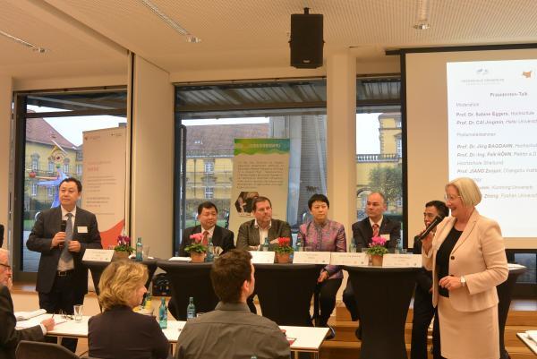 Die am Pr?sidentendialog beteiligten Pr?sidenten haben über Ma?nahmen zur F?rderung von Unternehmensgründungen durch Absolventen diskutiert. Seit 10 Jahren dienen die Symposien als eine Plattform für deutsche und chinesische Experten, bzw. als Plattform für den Dialog zwischen beiden Regierungen. Sie geben der Debatte über die Schwierigkeiten der zukünftigen Entwicklung der anwendungsorientierten Hochschulen einen Raum.