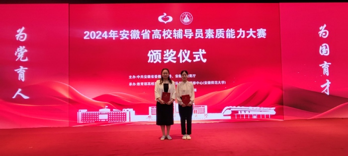 5月9日至11日,2024年度安徽省高校輔導員素質能力大賽在教育部高校思想政治工作隊伍培訓研修中心(安徽師范大學)舉辦。我校輔導員張銀雙老師榮獲一等獎,陳靜怡老師榮獲二等獎,實現了我校在該項比賽中成績的突破。
