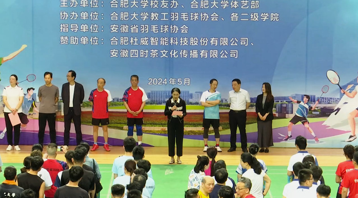 5月18日,合肥大學(xué)第一屆“杜威杯”校友羽毛球邀請賽在我校體育館成功舉辦。比賽由校友辦公室和公共體育與藝術(shù)教學(xué)部共同主辦,校教工羽毛球協(xié)會、各二級學(xué)院協(xié)辦,安徽省羽毛球協(xié)會指導(dǎo),共邀請15支代表隊近130名運動員參賽。副校長陳秀致辭。