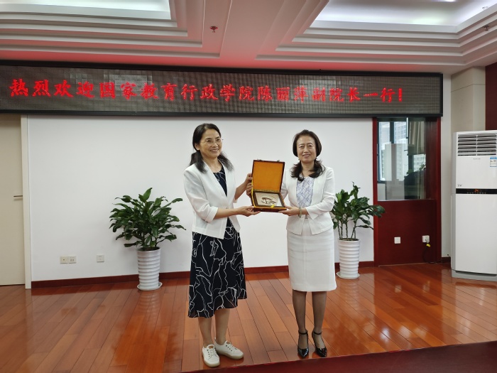 7月12日,國家教育行政學院副司級院領導陳麗萍一行來訪我校,就兩校開展國際化合作進行座談交流。黨委書記王其東、副校長陳秀出席座談會。