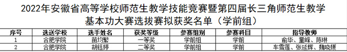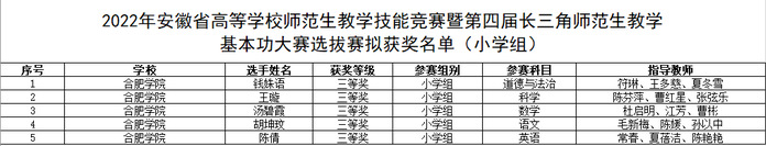 近日,省教育廳公布了2022年安徽省高等學校師范生教學技能競賽獲獎名單,我校教育學院推選的7名學生表現出色,獲得一等獎1項、二等獎1項、三等獎5項。
