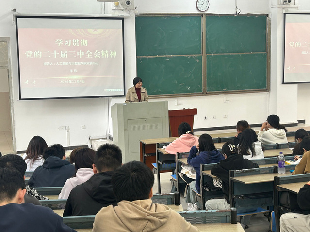 11月4日中午,人工智能與大數據學院在36棟1JT教室隆重舉行了2024下半年入黨積極分子培訓班開班儀式,本次開班儀式由院團委書記章云冉老師主持,黨委書記牛欣教授為大家做“學習貫徹黨的二十屆三中全會”主題黨課。