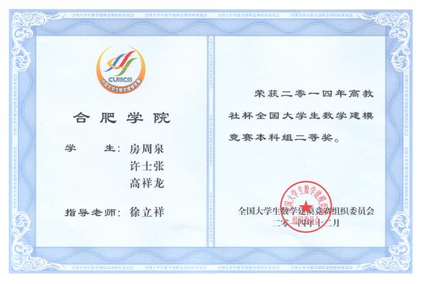 【近幾年合肥學院學子美國大學生數學建模競賽獲獎名單】
