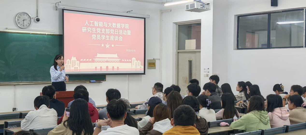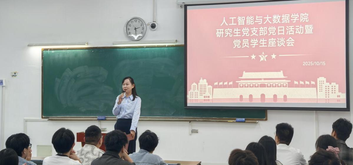 為進一步規(guī)范研究生黨員發(fā)展流程,增強黨員的責任意識與使命擔當,10月15日下午,人工智能與大數據學院研究生黨支部在35棟203教室召開主題黨日活動暨黨員學生座談會。學院黨委副書記、紀委書記姚娜,研究生第二黨支部書記解黎陽出席會議。研究生黨支部全體黨員、入黨積極分子及學生代表參加會議。