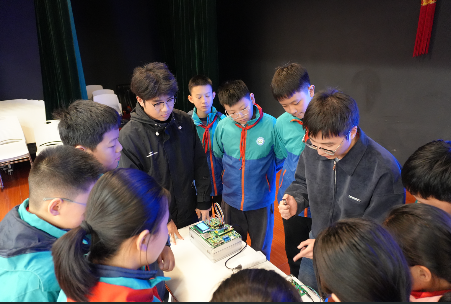 講座甫一落幕,智能作品展示與體驗環節隨即啟動。由龍夏老師帶領的物聯網應用創新團隊以現場演示、互動操作的形式,讓同學們近距離感知前沿科技。智能傳感裝置、數據可視化模型等作品依次亮相,吸引在場師生的駐足觀摩和踴躍體驗。在團隊成員的悉心指導下,同學們親手操控設備,切實體會到了AI技術的獨特魅力。