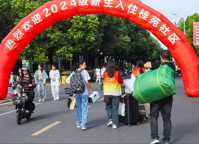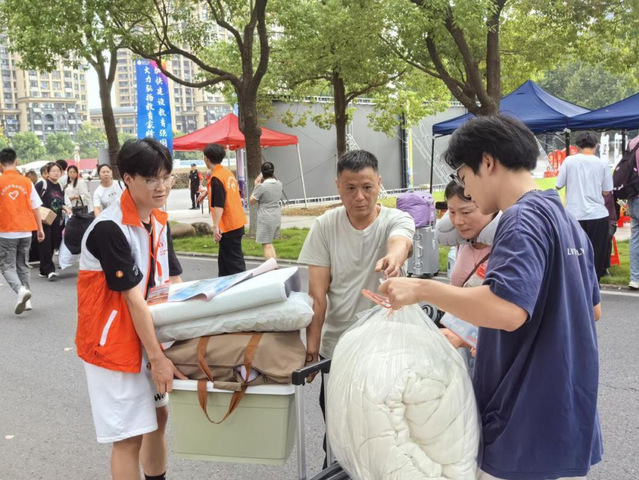 在迎新活動中,可以看到志愿者們以最高昂的熱情為每一個新同學(xué)指引方向;也可以看到志愿者們毫不猶豫地接過每一個新同學(xué)的行李箱,肩扛手提、步履穩(wěn)健地穿梭在校園各處,汗水浸透了他們的后背,卻始終無法抹去他們臉上溫暖的笑容。
