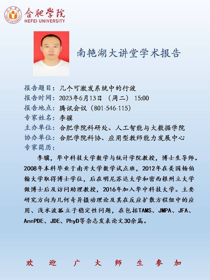【講座預告】幾個可激發系統中的行波