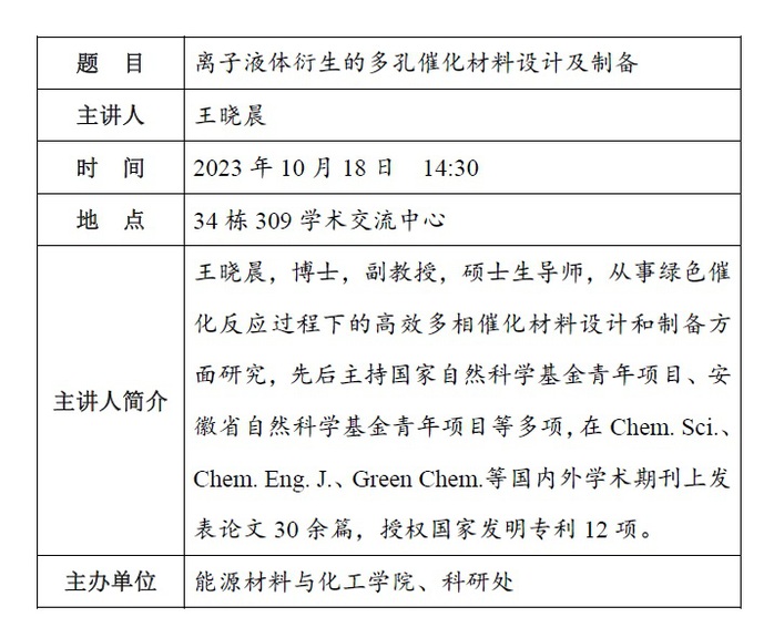 【善思講壇】離子液體衍生的多孔催化材料設計及制備