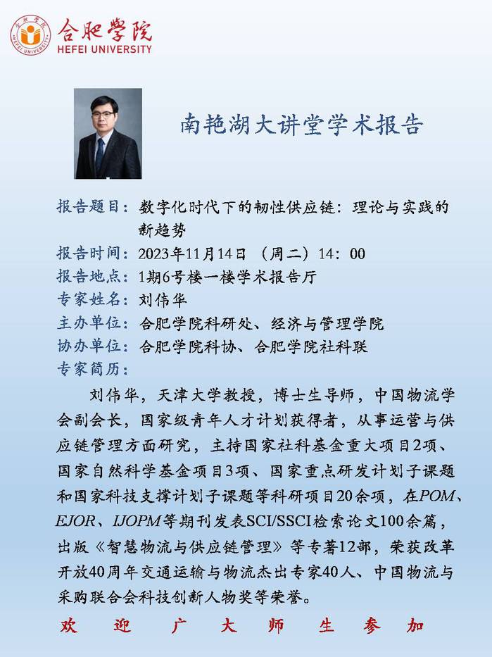 【南艷湖大講堂】數字化時代下的韌性供應鏈:理論與實踐的新趨勢