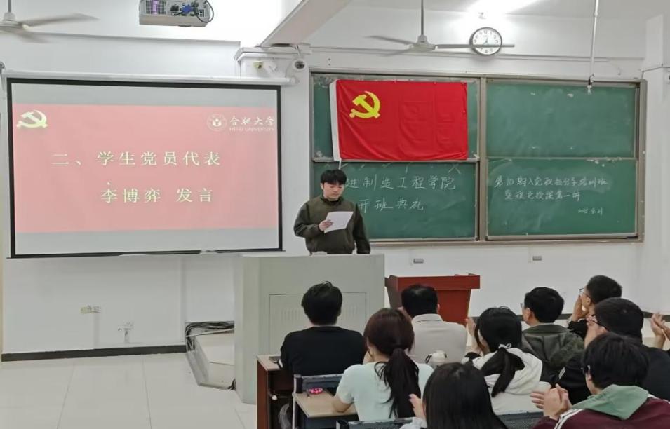 2021級(jí)機(jī)械設(shè)計(jì)制造及其自動(dòng)化李博弈同學(xué)作為學(xué)生黨員代表發(fā)言。他回顧了自己的入黨初心與成長歷程,坦言黨員身份不僅是一份榮譽(yù),更是時(shí)刻督促自己“知不足而奮進(jìn)”的精神鞭策。這份使命感促使他在學(xué)習(xí)生活中始終保持昂揚(yáng)向上的精神風(fēng)貌,并投身于科技競賽榮獲一系列國家級(jí)、省級(jí)榮譽(yù),順利考取中國科學(xué)技術(shù)大學(xué)研究生。他希望學(xué)員們以端正的態(tài)度投入黨校學(xué)習(xí),在學(xué)思踐悟中堅(jiān)定理想信念、錘煉過硬本領(lǐng),勇?lián)鷷r(shí)代使命,早日成長為新時(shí)代合格的共產(chǎn)黨員。
