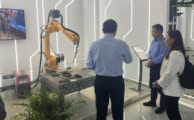 5月20日下午,杜娟書記帶隊一行在埃夫特智能裝備股份有限公司工作人員的陪同下參觀調研了埃夫特智能裝備股份有限公司,張帷總經理陪同參觀了公司的展廳,并介紹了公司發展歷程、機器人產業應用和跨行業智能制造解決方案及該公司的人才需求情況。隨后在座談會上,許禮進董事長對調研組的到來表示熱烈歡迎,并進行了雙方產學研合作進行了洽談,重點探討了企業與學校的人才培養以及科研合作。